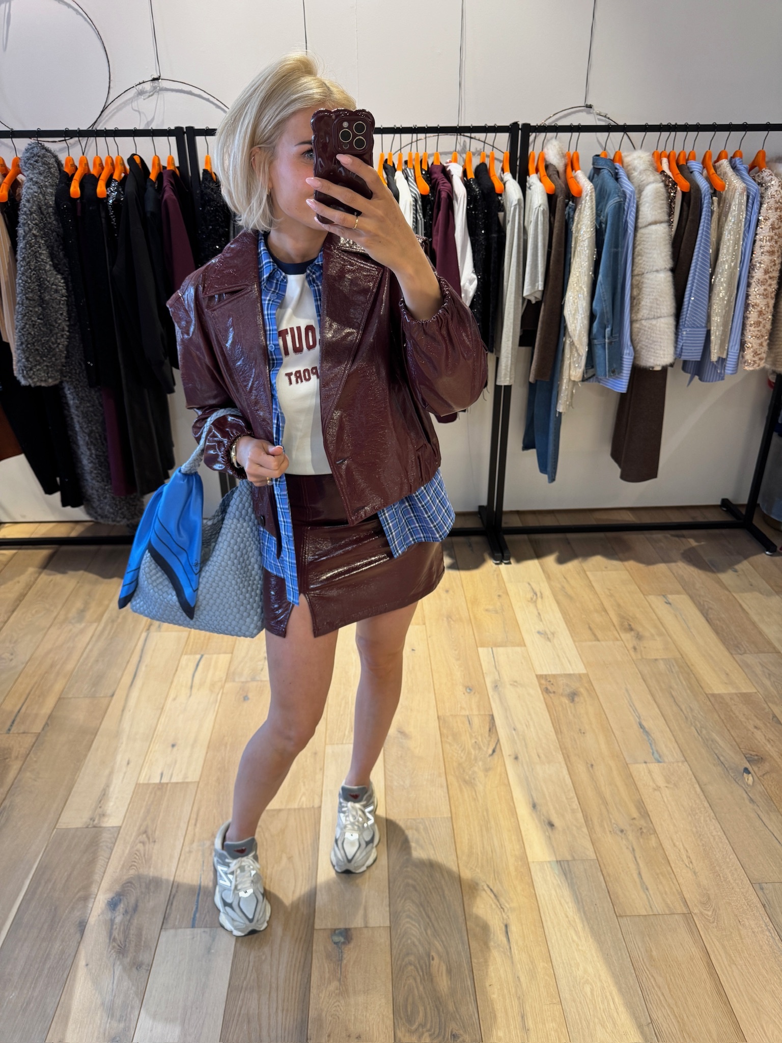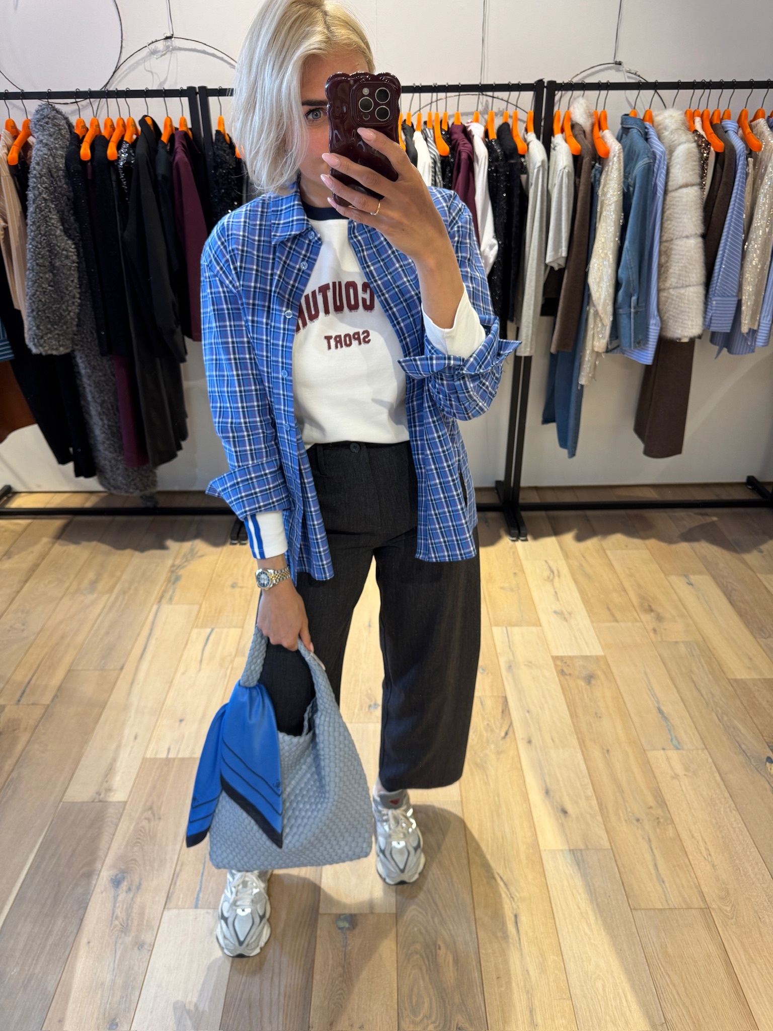 • Deze blauwe geruite blouse combineert Scandinavische minimalisme met Parijse chic. Perfect voor een stijlvolle, tijdloze look.
