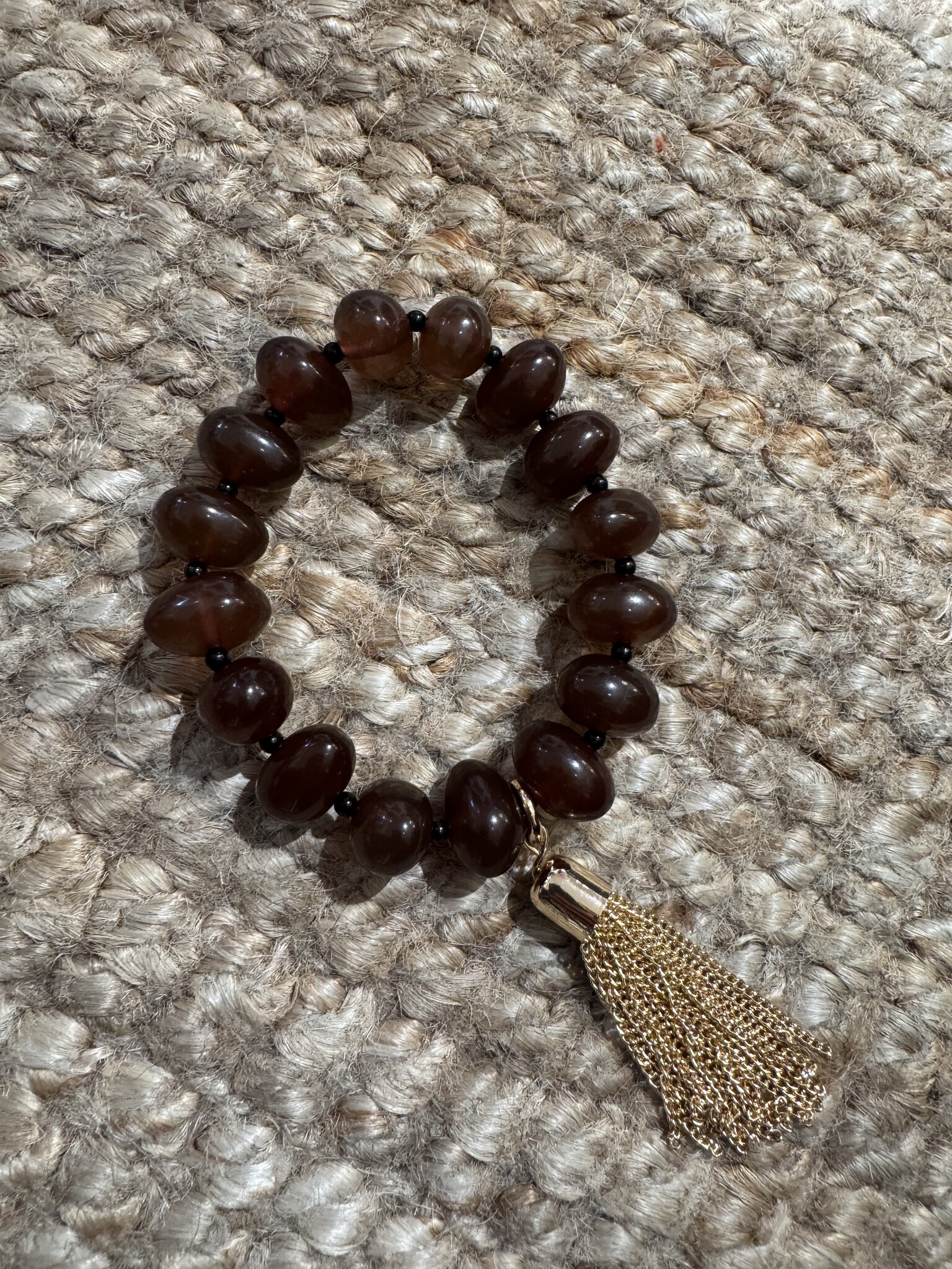 De Arta is een elastische kralenarmband met ovale kralen en een gouden kwastje wat de armband een exclusieve touch geeft. Verkrijgbaar in verschillende kleuren.