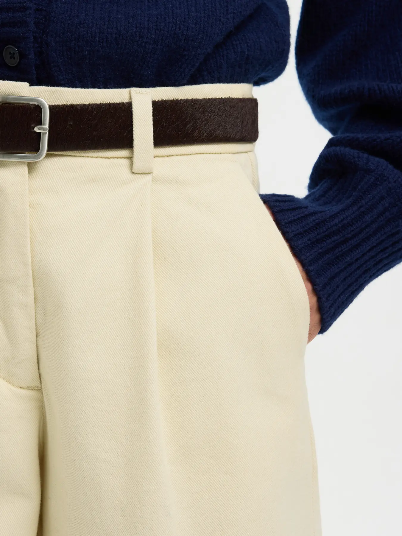 Dankzij de mid-waist pasvorm sluit de jeans mooi aan in de taille, terwijl de stevige maar soepele denim zorgt voor een comfortabele fit die de hele dag meegaat. De neutrale, lichte kleur maakt deze broek extra veelzijdig. Perfect voor frisse voorjaarslooks, maar ook moeiteloos te combineren met warme tonen in de herfst.