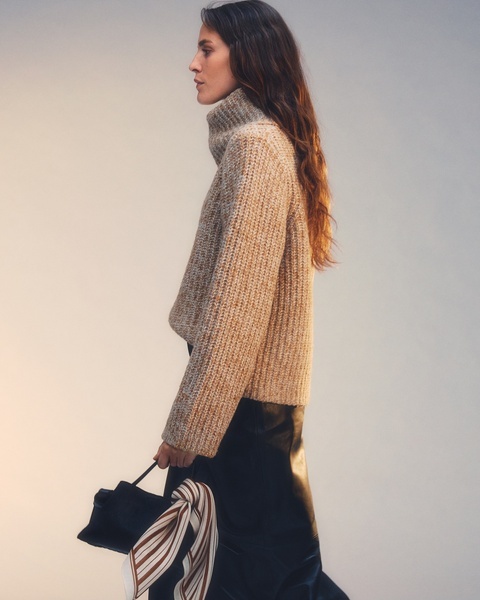 Chicago LS Knit Split Roll Neck Golden Brown/Mix