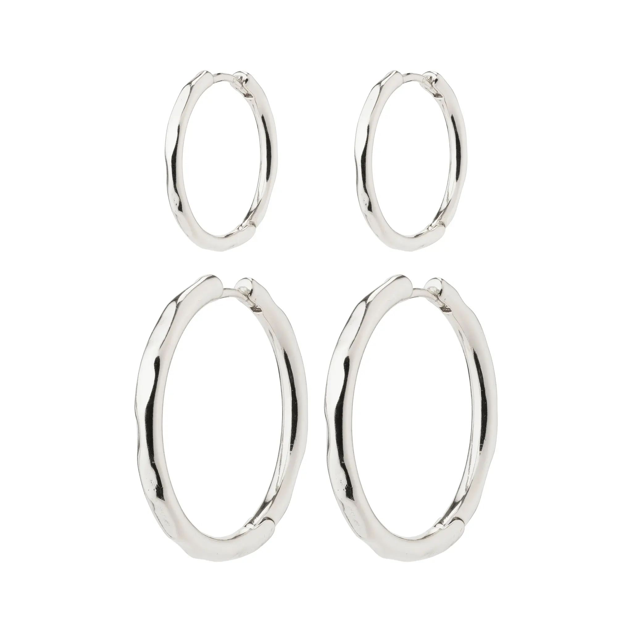 Maak je look compleet met de stijlvolle Pilgrim Oorbellen 'Eve' Dames. Deze elegante 2-in-1 set bestaat uit twee paar zilverkleurige hoops met een subtiele golvende afwerking, waardoor ze een moderne en speelse uitstraling krijgen. Draag beide paren samen voor een trendy layered look of kies voor één paar voor een minimalistische en tijdloze stijl. Dankzij de handige kliksluiting zijn ze eenvoudig in en uit te doen en zitten ze comfortabel de hele dag. Met diameters van 20 mm en 30 mm zijn deze oorbell.