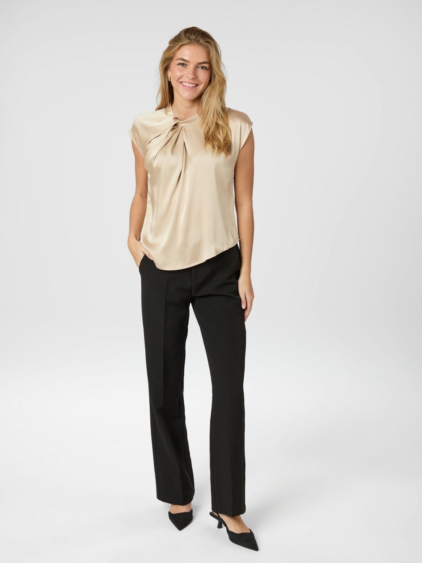 De Fleur Drapy Satin Blouse Light Pink straalt pure elegantie uit. De zachte satijnen stof valt soepel om het lichaam en geeft de blouse een luxe, vrouwelijke look. De lichtroze tint zorgt voor een frisse en romantische uitstraling die moeiteloos klasse toevoegt aan elke outfit. Verkrijgbaar in twee andere kleuren, Light Pink en Grey.