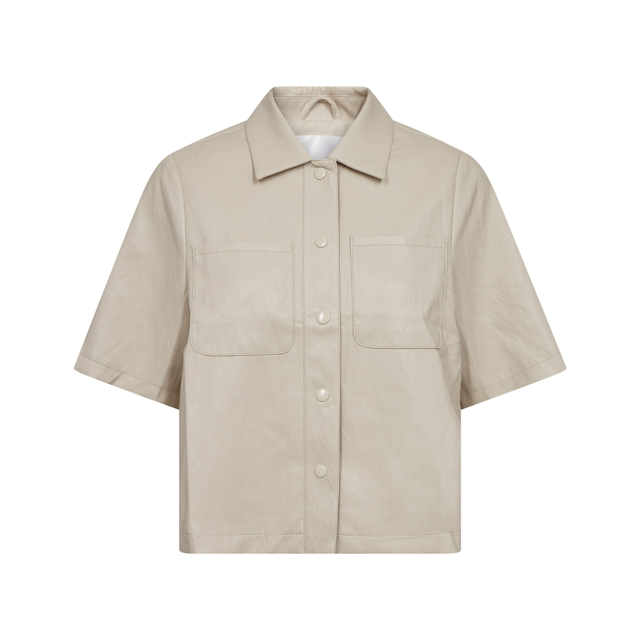 Deze faux leather blouse van Co’Couture heeft een stoere, maar vrouwelijke uitstraling. Het model met korte mouwen, klassieke kraag en drukknopen geeft een moderne twist aan een tijdloos design. Perfect om los te dragen op een jeans of als statement piece in een layered look. En perfect te combineren met de bijpassende bermuda.