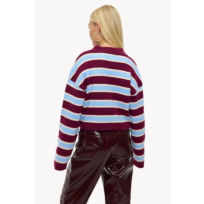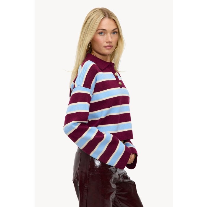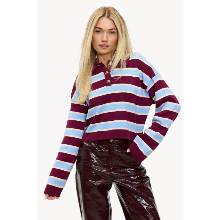Glint Of Ice Burgundy And Blue Striped Sweater