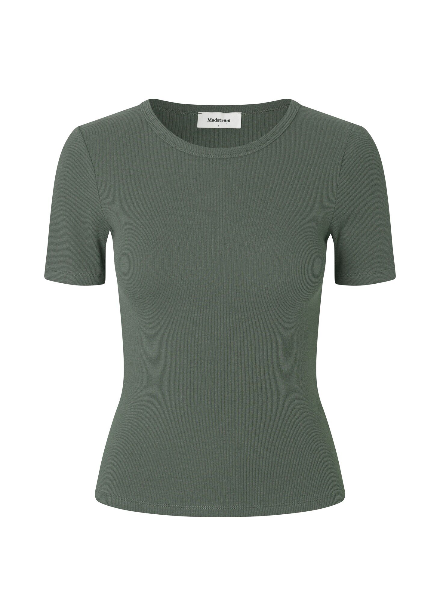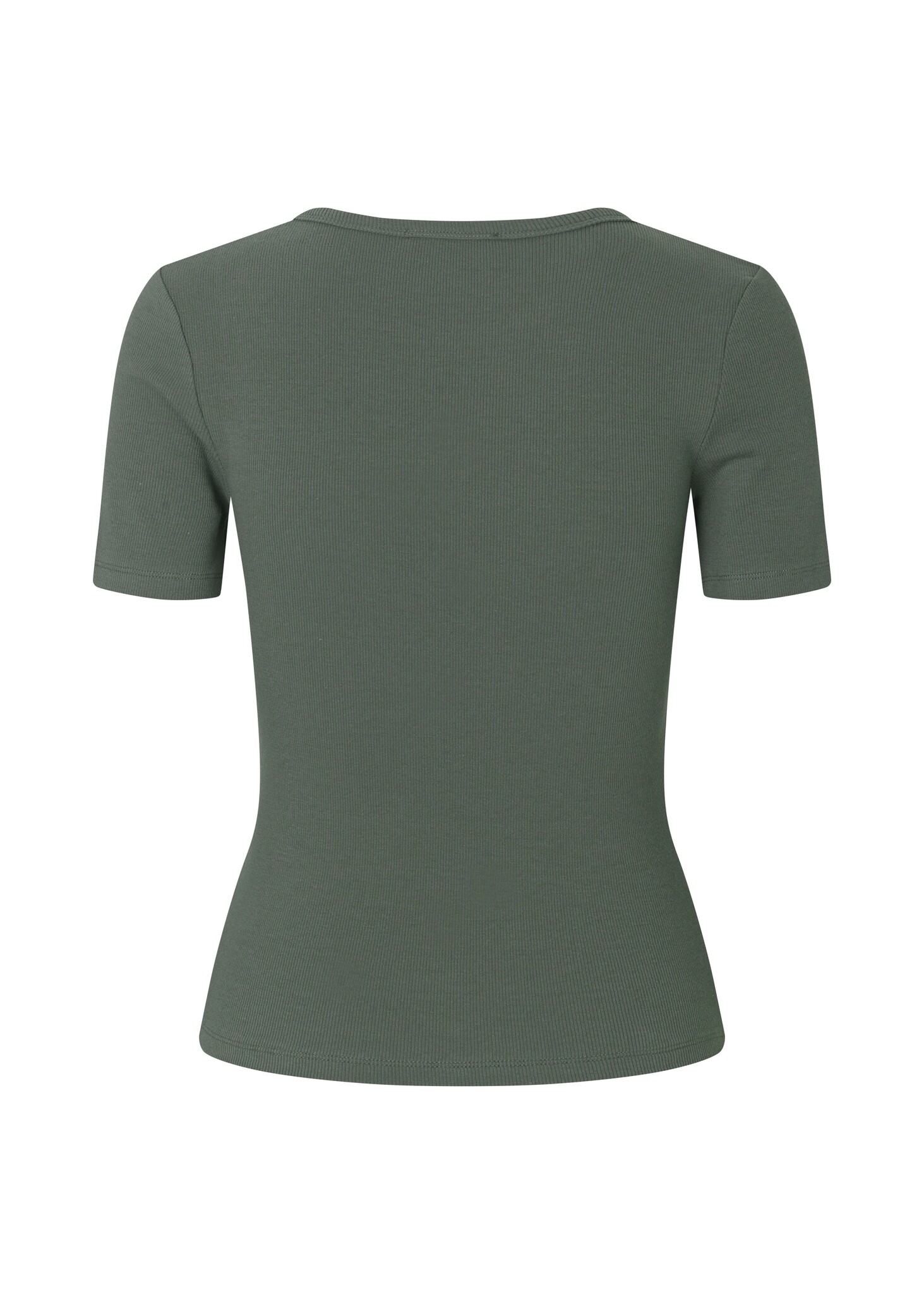 Het Igormd T-shirt is een basic essential in donkergroen, gemaakt van een zachte katoenen rib met stretch. Het korte model heeft een strakke pasvorm en korte mouwen voor een moderne, vrouwelijke look. Perfect als basisstuk voor elke outfit.