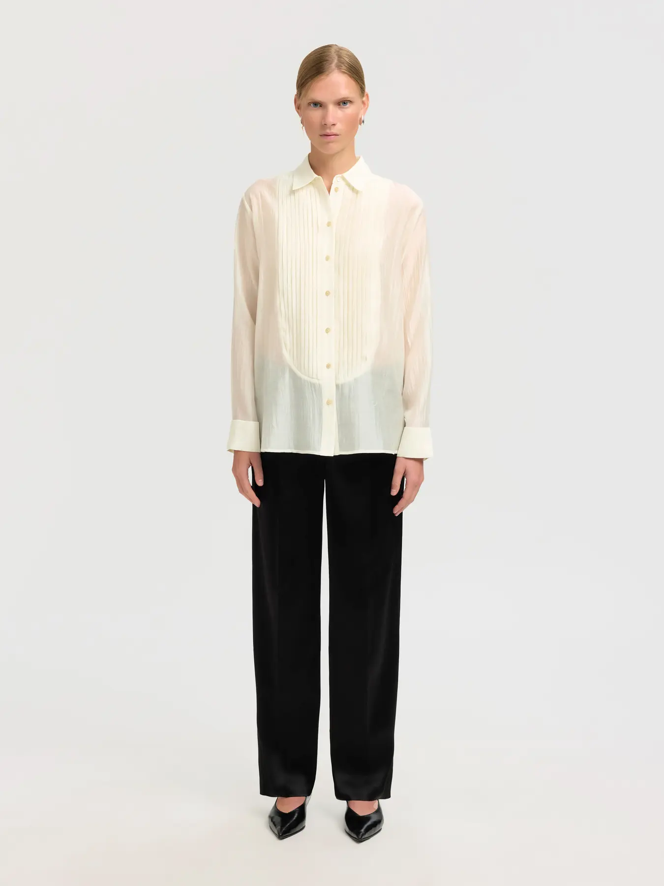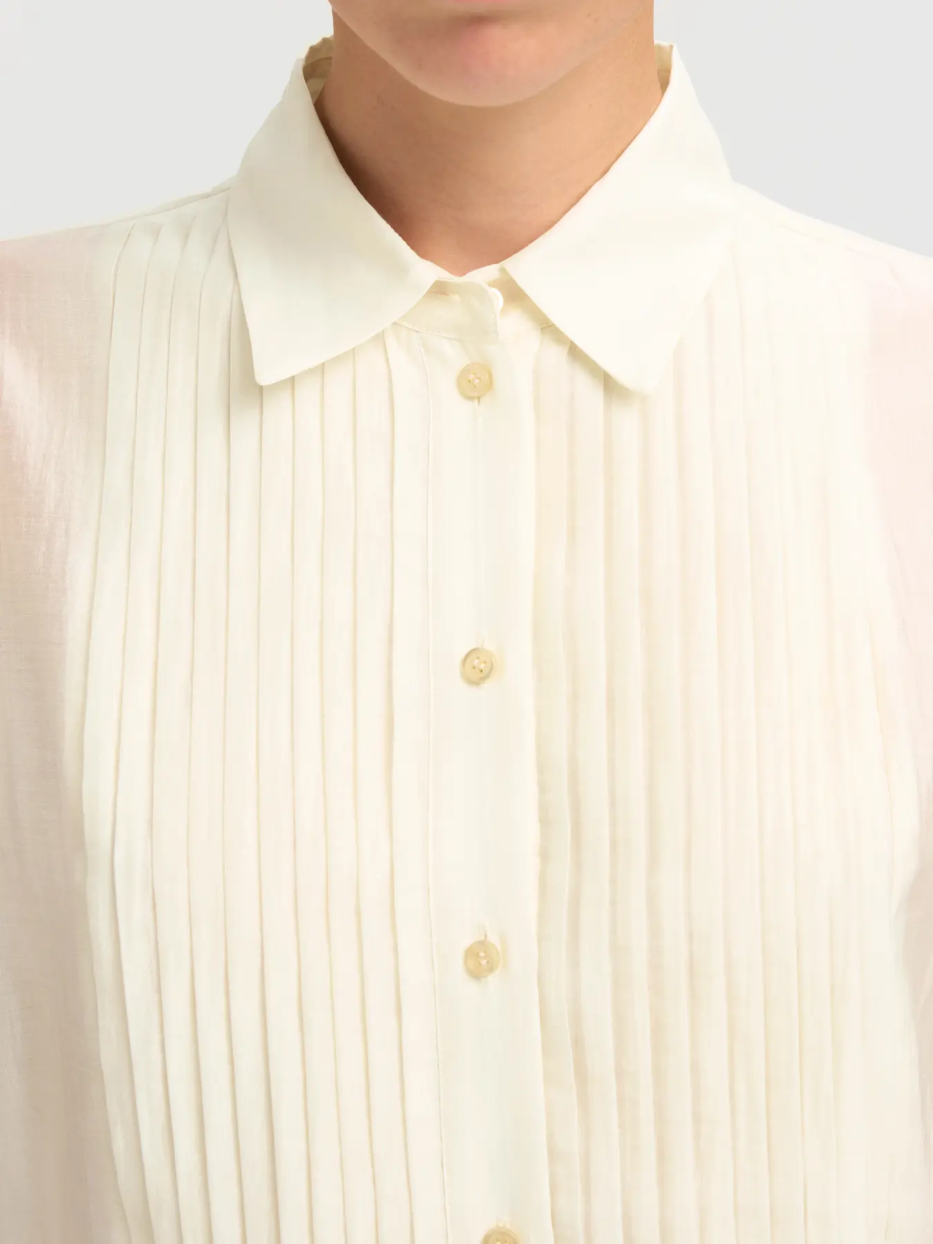 Toffe creme kleurige blouse met plisse detail aan de voorkant.