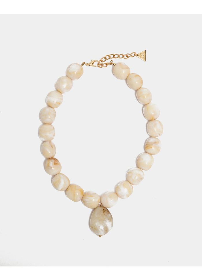 Een opvallende parelketting met grote, schitterende parels, afgewerkt met een statementsteen in het midden. Moeiteloos chic met een moderne twist, ontworpen om de aandacht te trekken en elke look naar een hoger niveau te tillen. Het ultieme accessoire voor een zelfverzekerde, modieuze uitstraling.