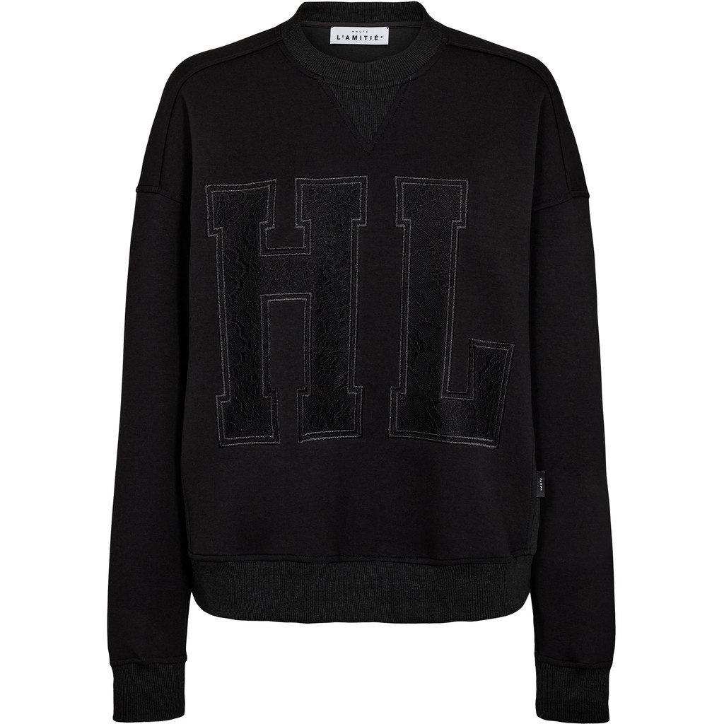 Sporty meets chic.Deze zwarte sweat is de perfecte mix van comfort en stijl. Deze sweater krijgt een vrouwelijke upgrade dankzij de kantapplicaties, die subtiel zorgen voor een elegante touch.
