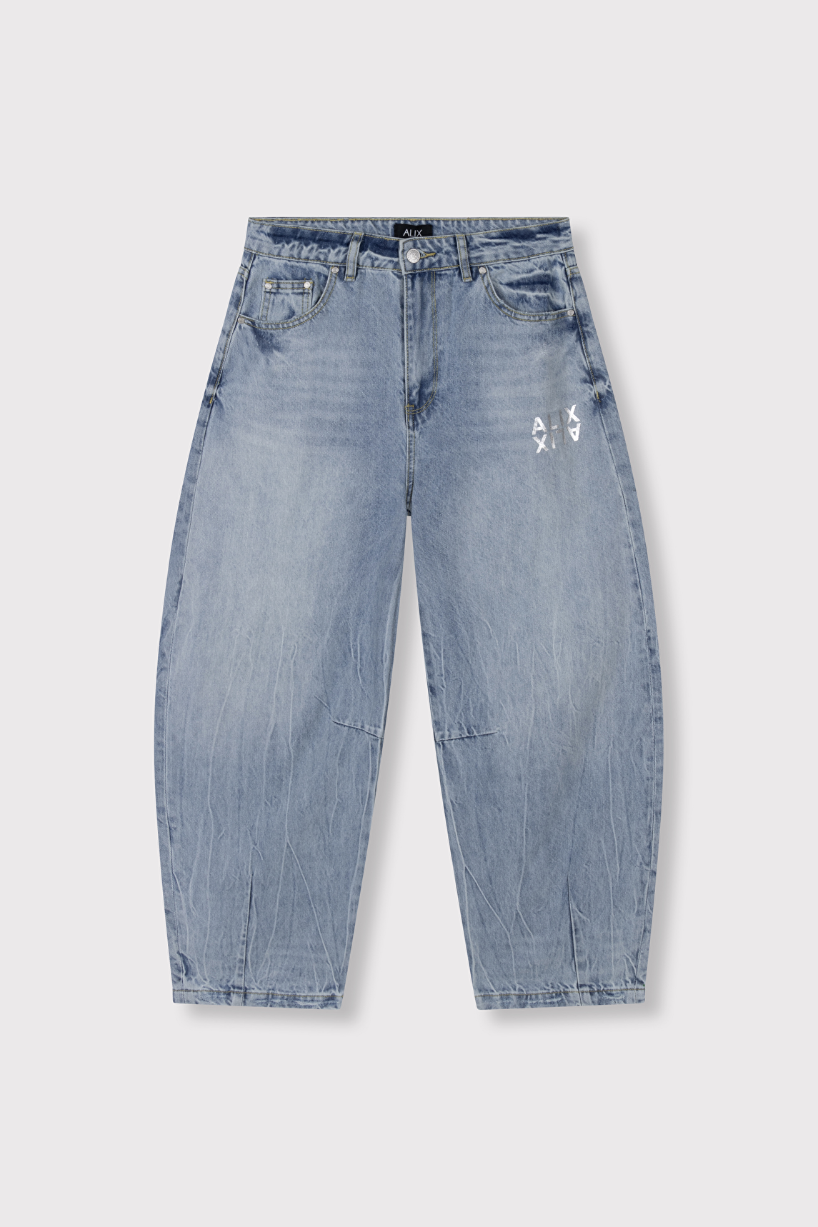 Baggy ballonjeans, vervaardigd van stevige denimstof. Voorzien van een ‘ALIX ALIX’ folieprint onder de voorzak. Combineer met een toffe blazer voor een complete look.