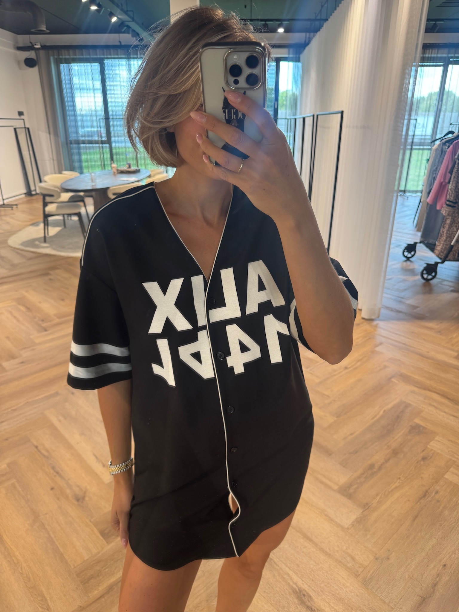 Dames shirt dress, geïnspireerd op een classic baseball silhouette en uitgevoerd in een geweven stof.De zwarte kleur en relaxte fit geven het item een sterke, urban uitstraling.Afgewerkt met sportieve details voor een echte streetwear vibe.