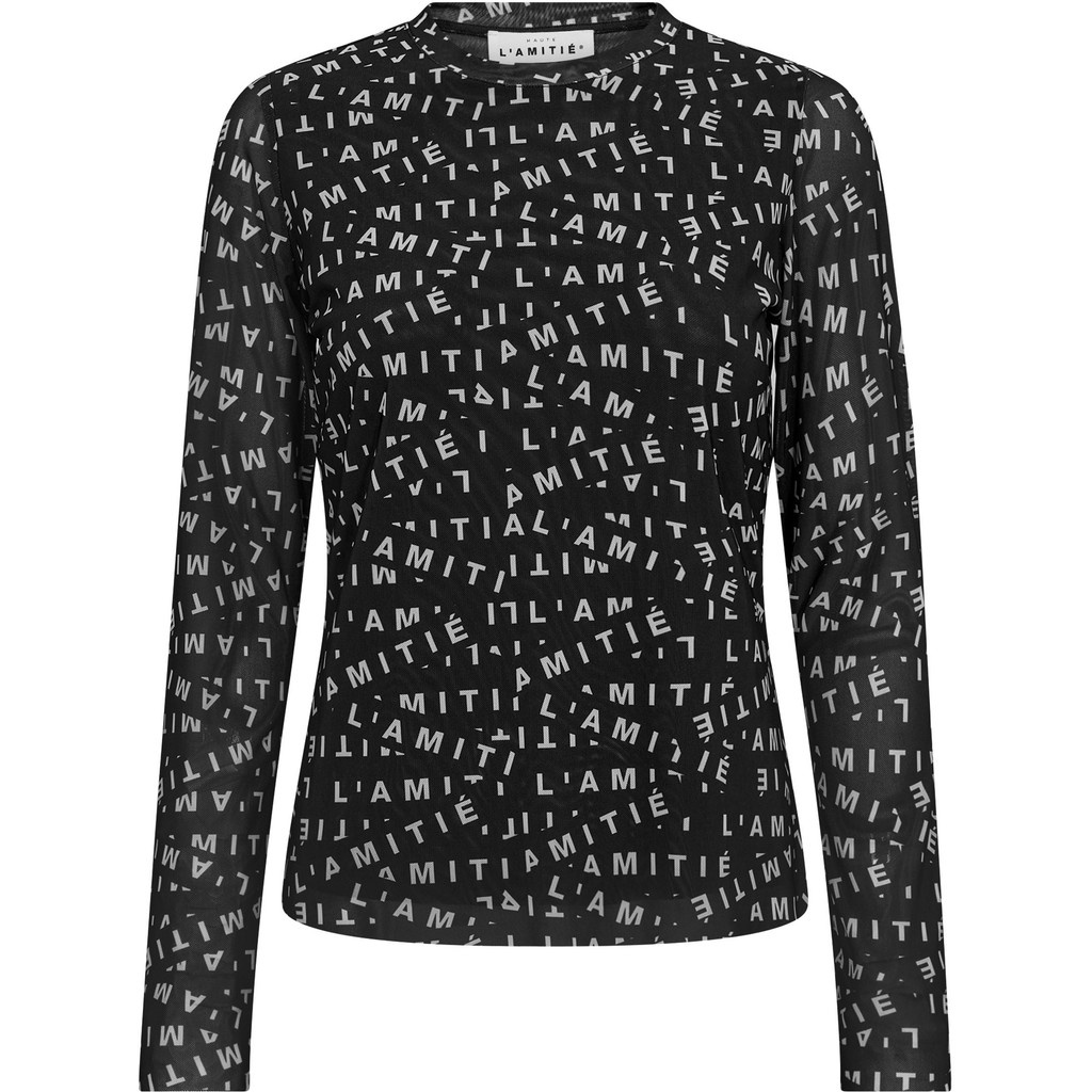 Mooie mesh top met lange mouw. Deze top heeft allemaal printjes van het merk als motief. Super leuk. De body is gevoerd, waardoor de top niet doorschijnt. Fit is heerlijk zacht en leuk te combineren met de baggy pantalons voor een trendy fit.