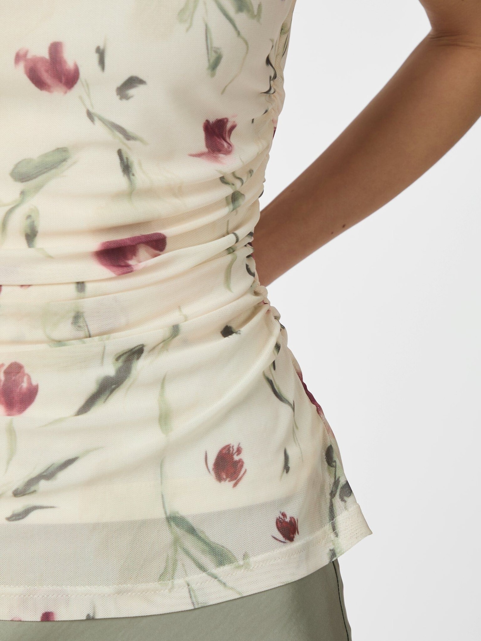 • Mooie, soepele top met smokwerkdetails langs de zijkant van het lichaam en de schouders.