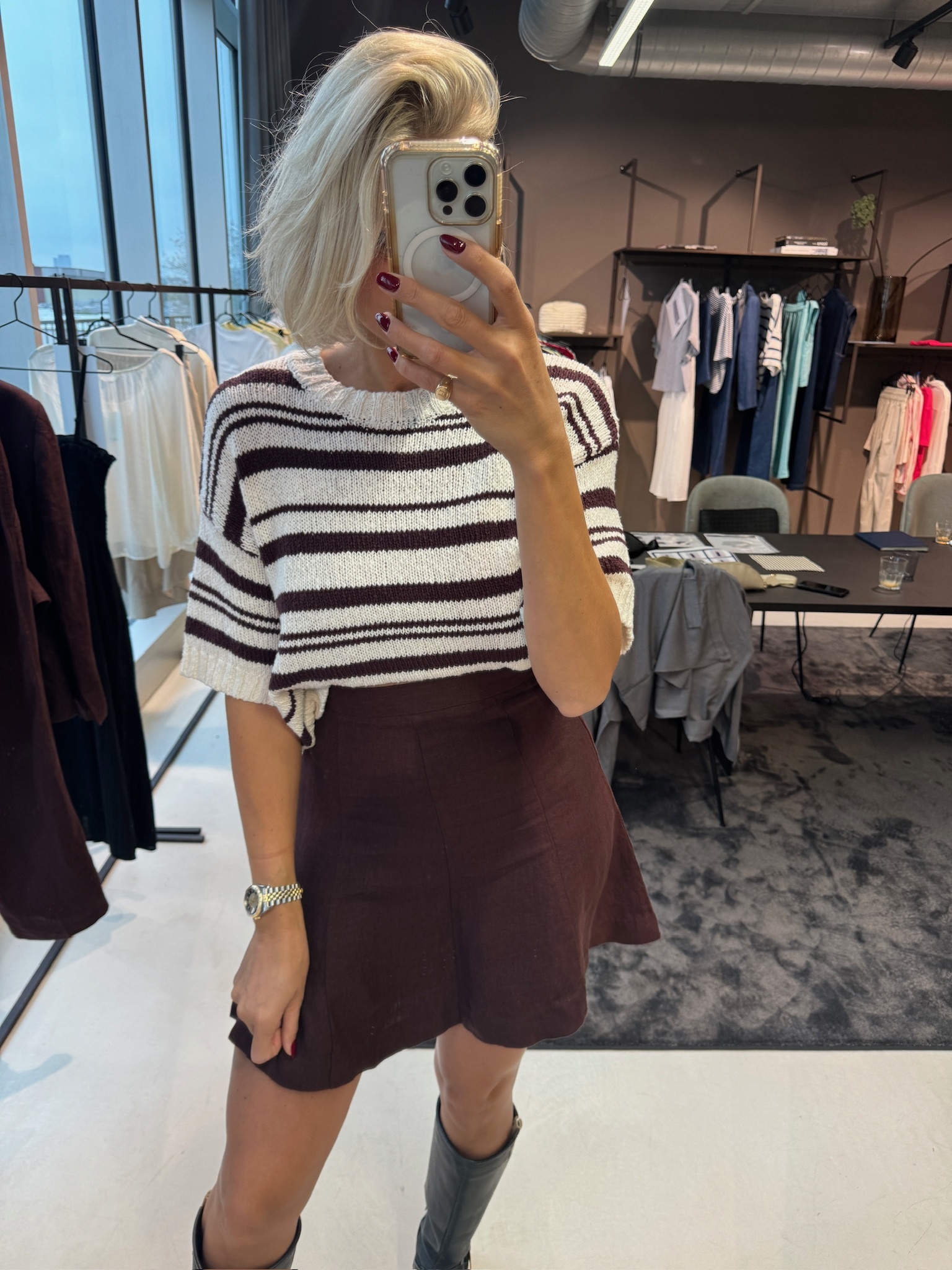 Fit: Valt normaal. Deze rok heeft een normale pasvorm. Het model is 179 cm lang en draagt maat S.