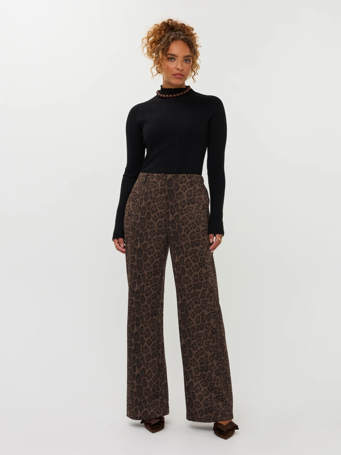 Pants Kylie heeft een wijde pasvorm en een trendy leopard print. Dankzij de elastische taille sluit de broek comfortabel aan en geeft hij je outfit meteen een statement look. De stof is super zacht waardoor de broek ook nog eens fijn aanvoelt. De binnenbeenlengte is 81 cm en de lengte van de broek is 108 cm bij een maat S.