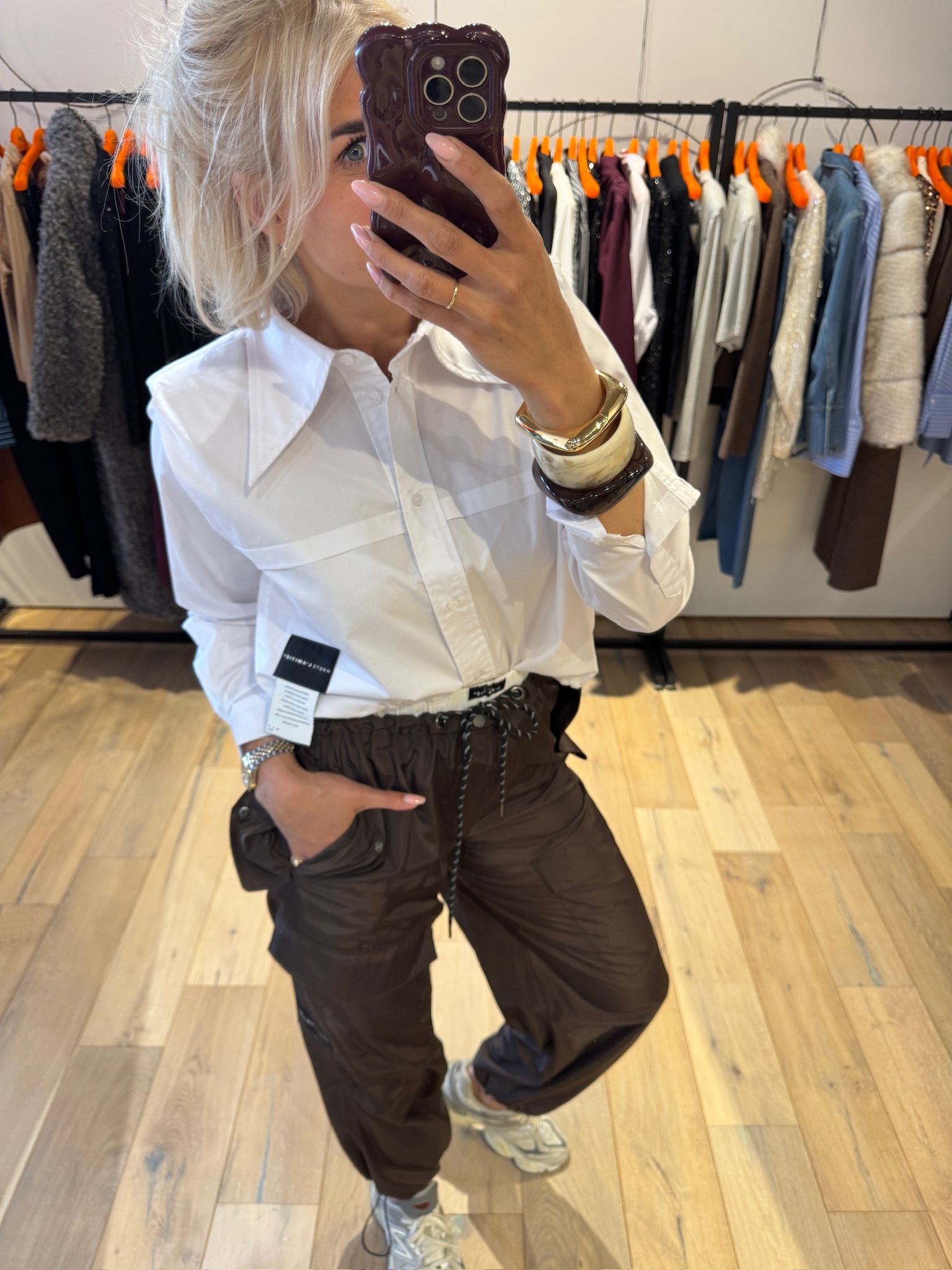 • Dit leuke poplin shirt van Haute L’Amitié is een moderne twist op het klassieke witte overhemd .Met een oversized kraag, cleane afwerking en verfijnde details straalt dit shirt minimalistische luxe uit.
