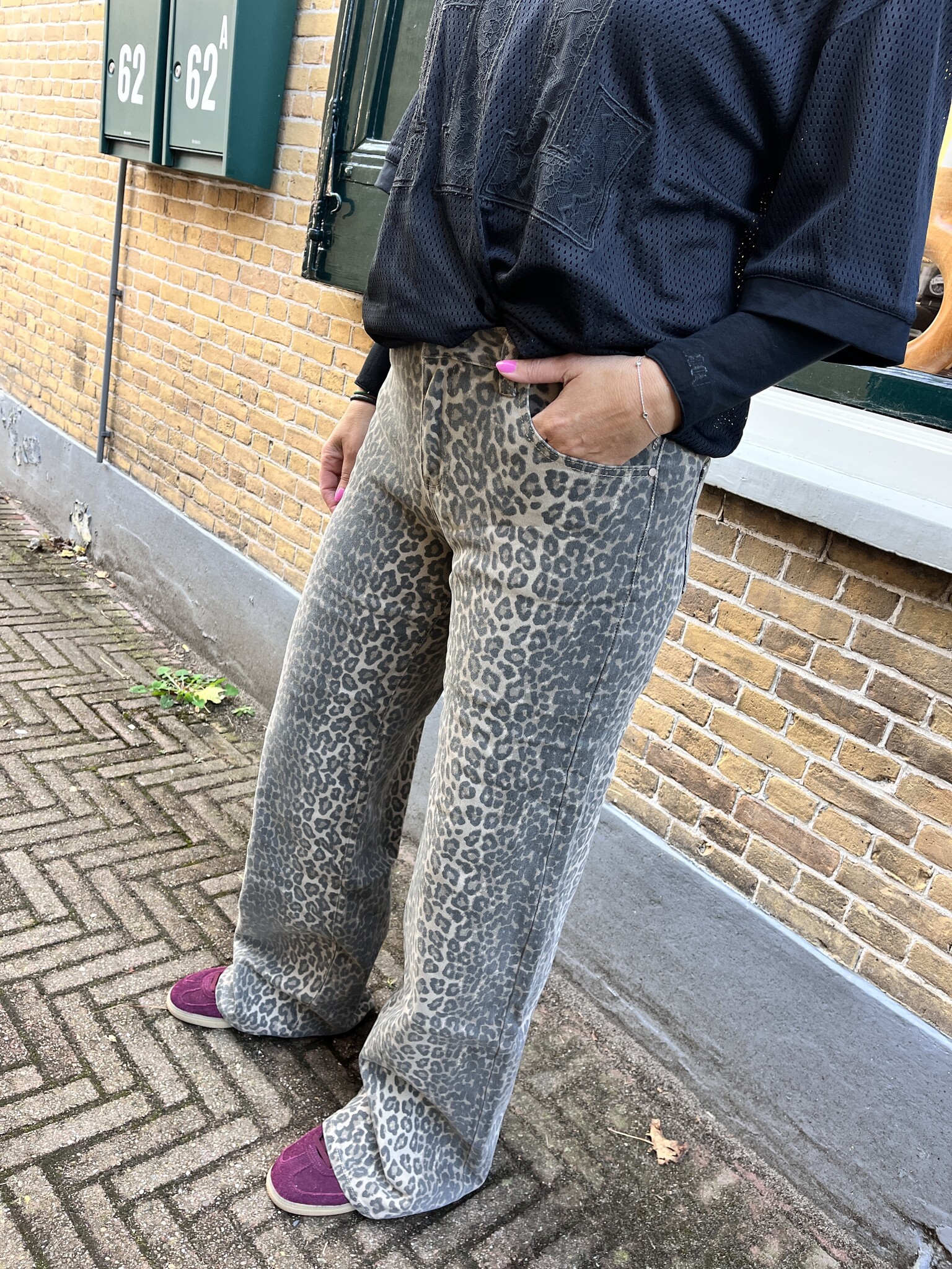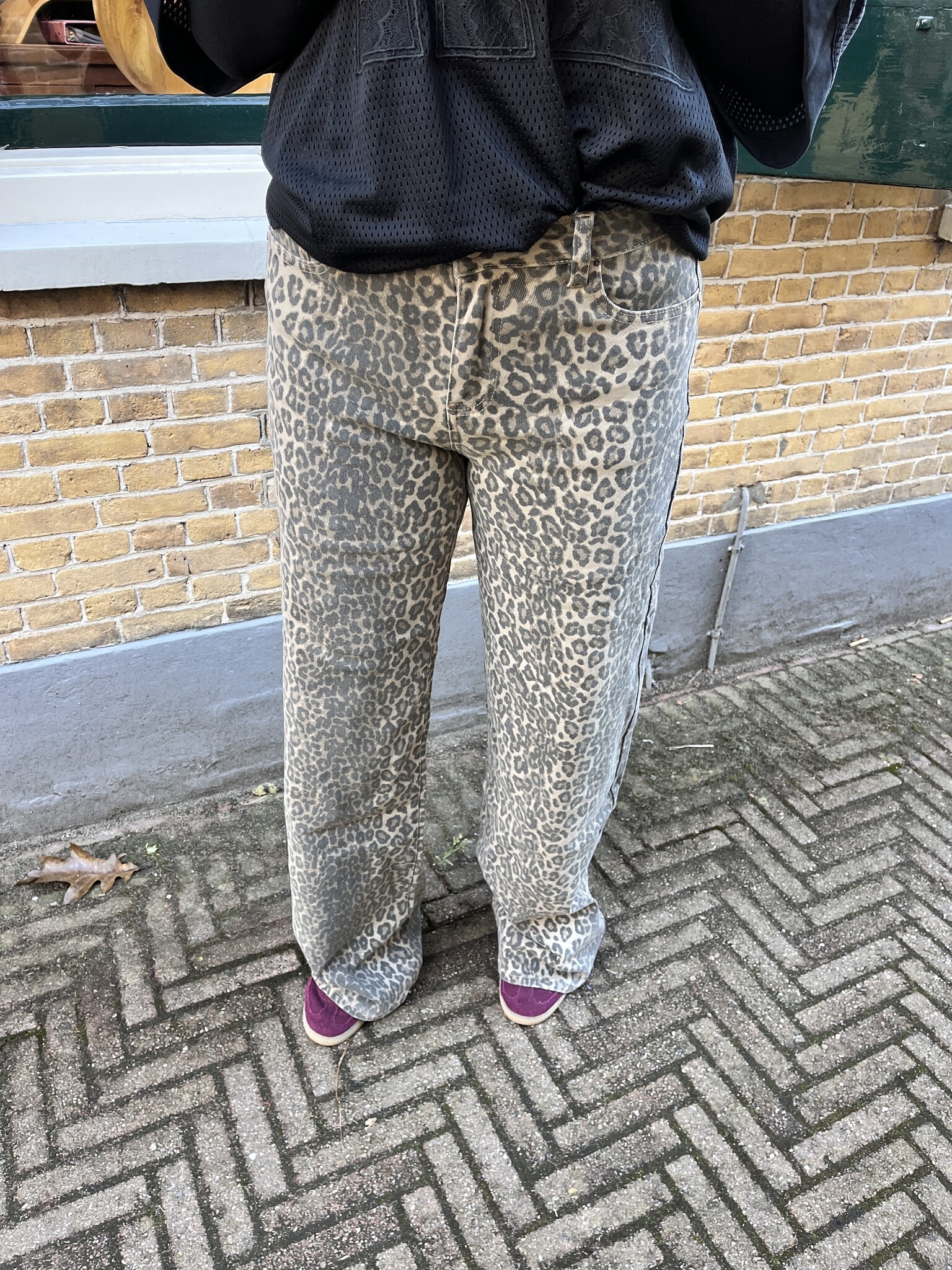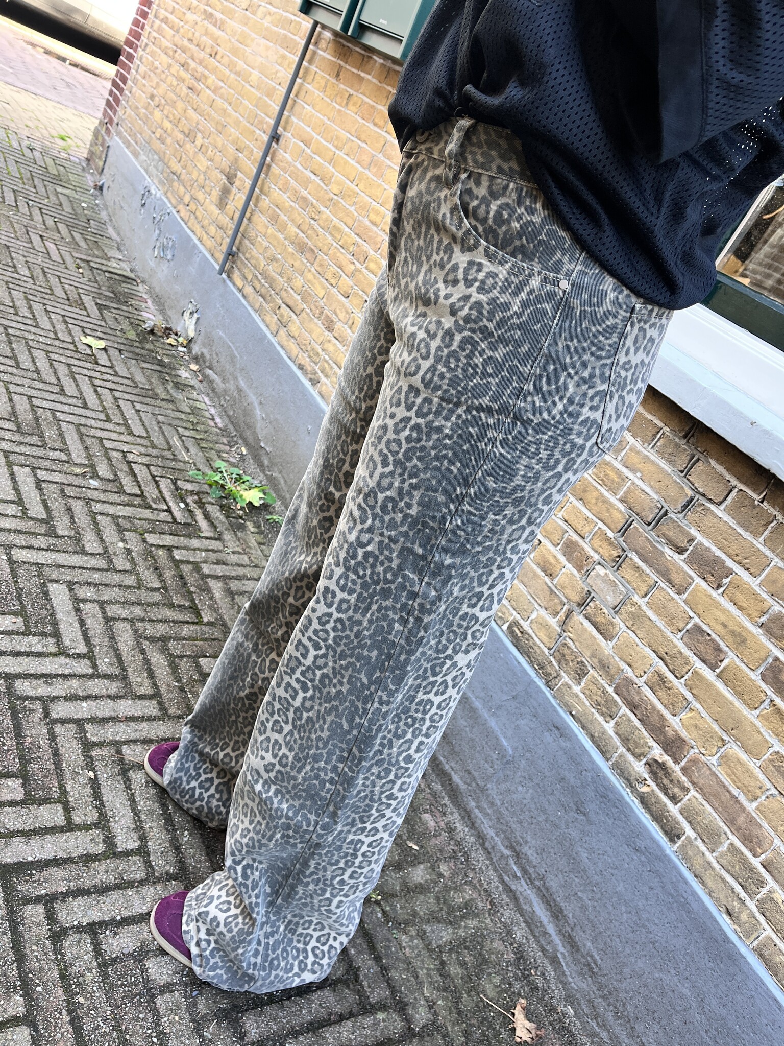 Met haar straight fit, extra lange pijpen en opvallende leopard print is deze jeans allesbehalve basic. Mid waist en mega stijlvol. Combineer met een simpele top en laat je broek het werk doen.