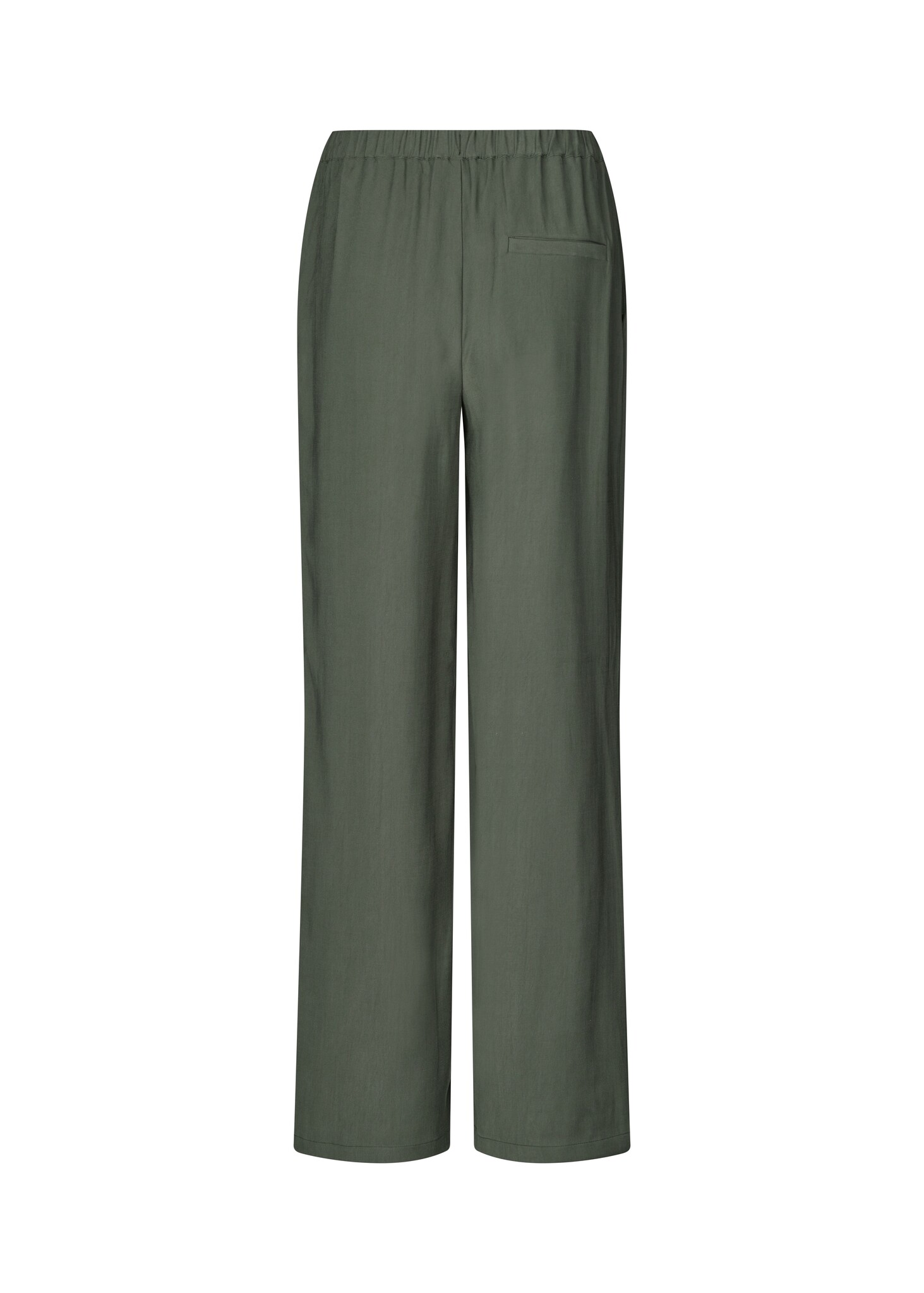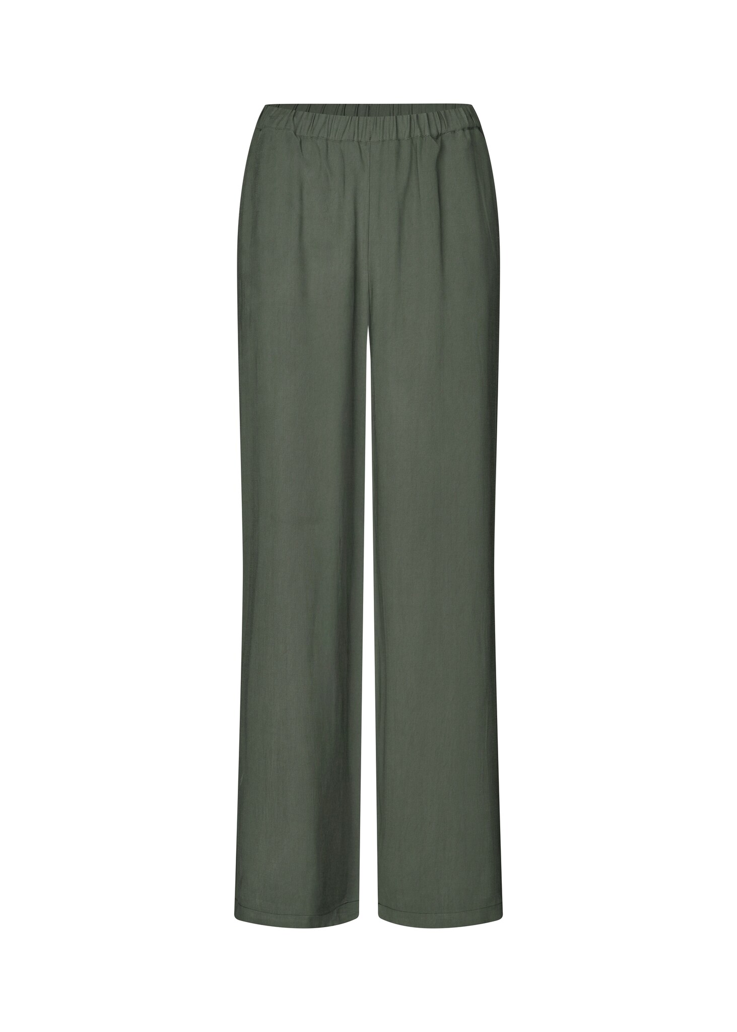 Losse soepelvalende pantalon in mosgroen. Deze pantalon heeft een elastische taille voor een perfecte pasvorm en een casual look die gemakkelijk gestyled kan worden met een elegant geprint overhemd of top. Je nieuwe go-to-pantalon voor zowel alledaagse als speciale gelegenheden.