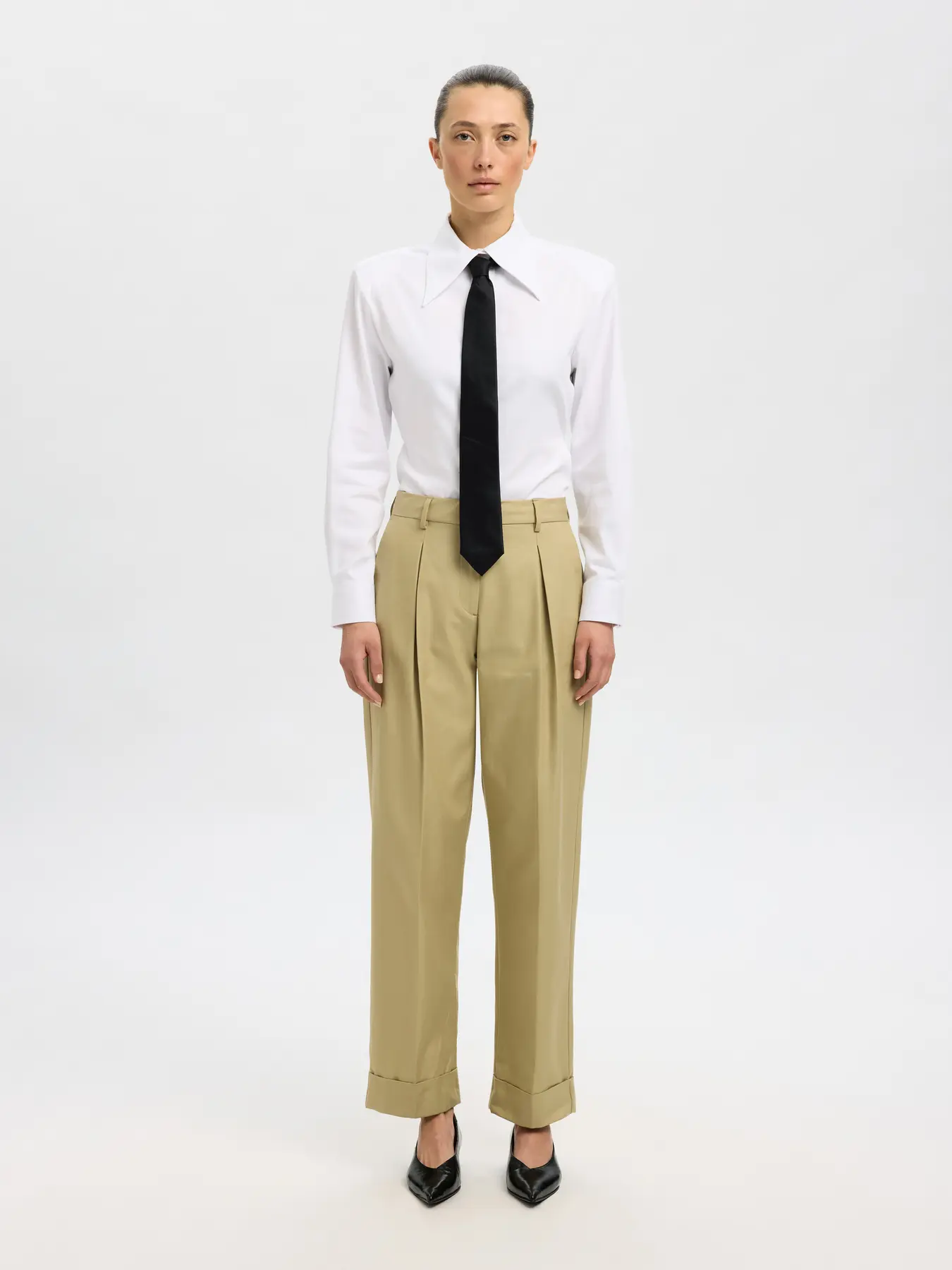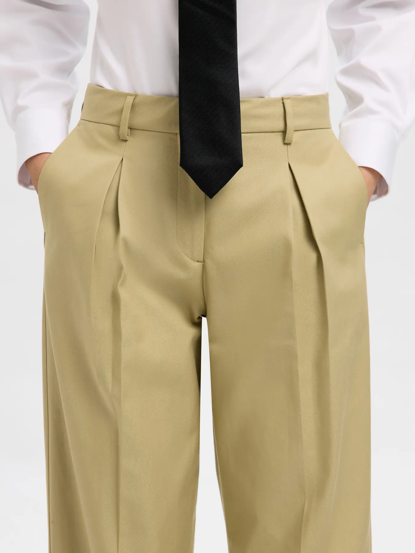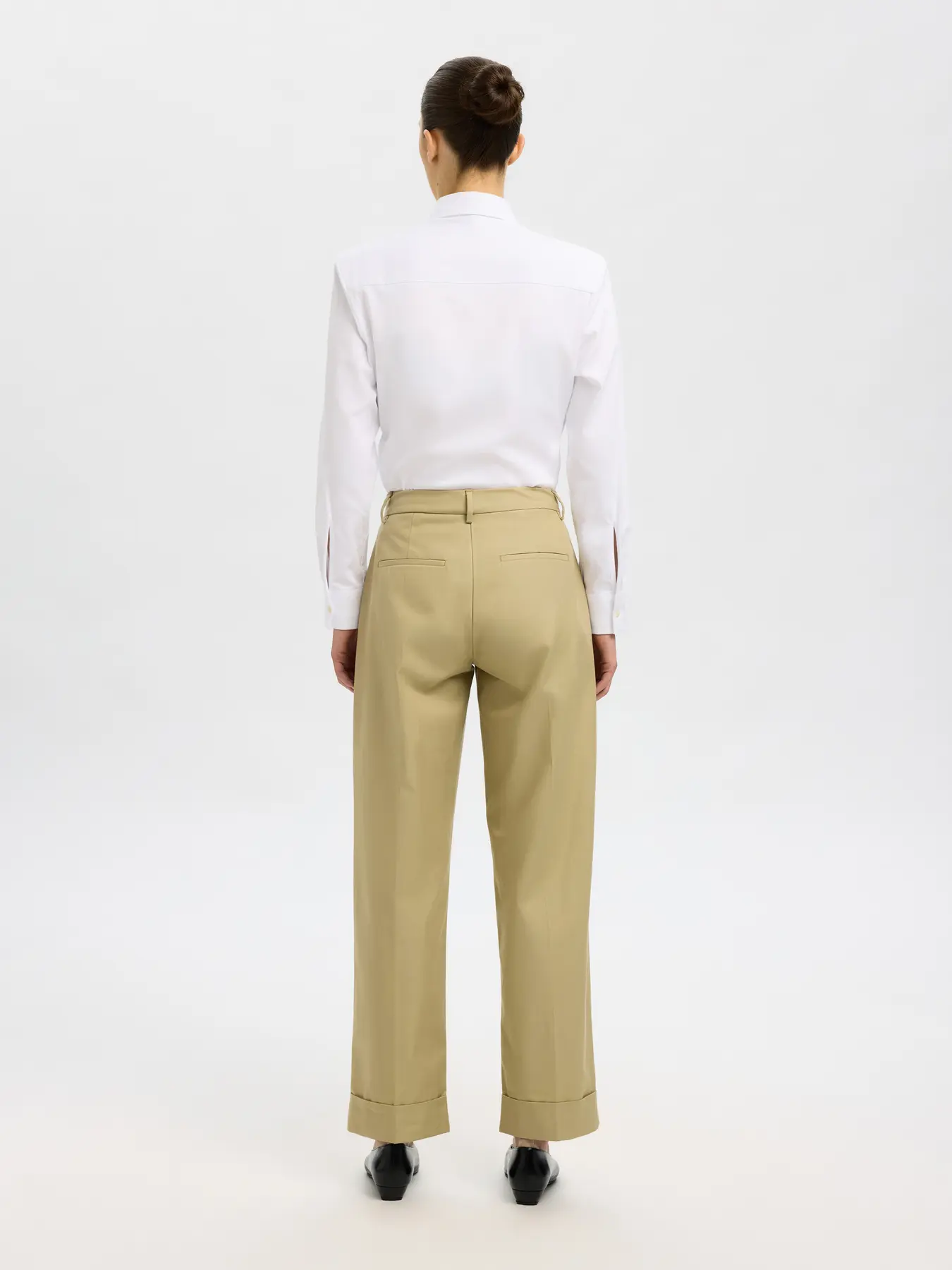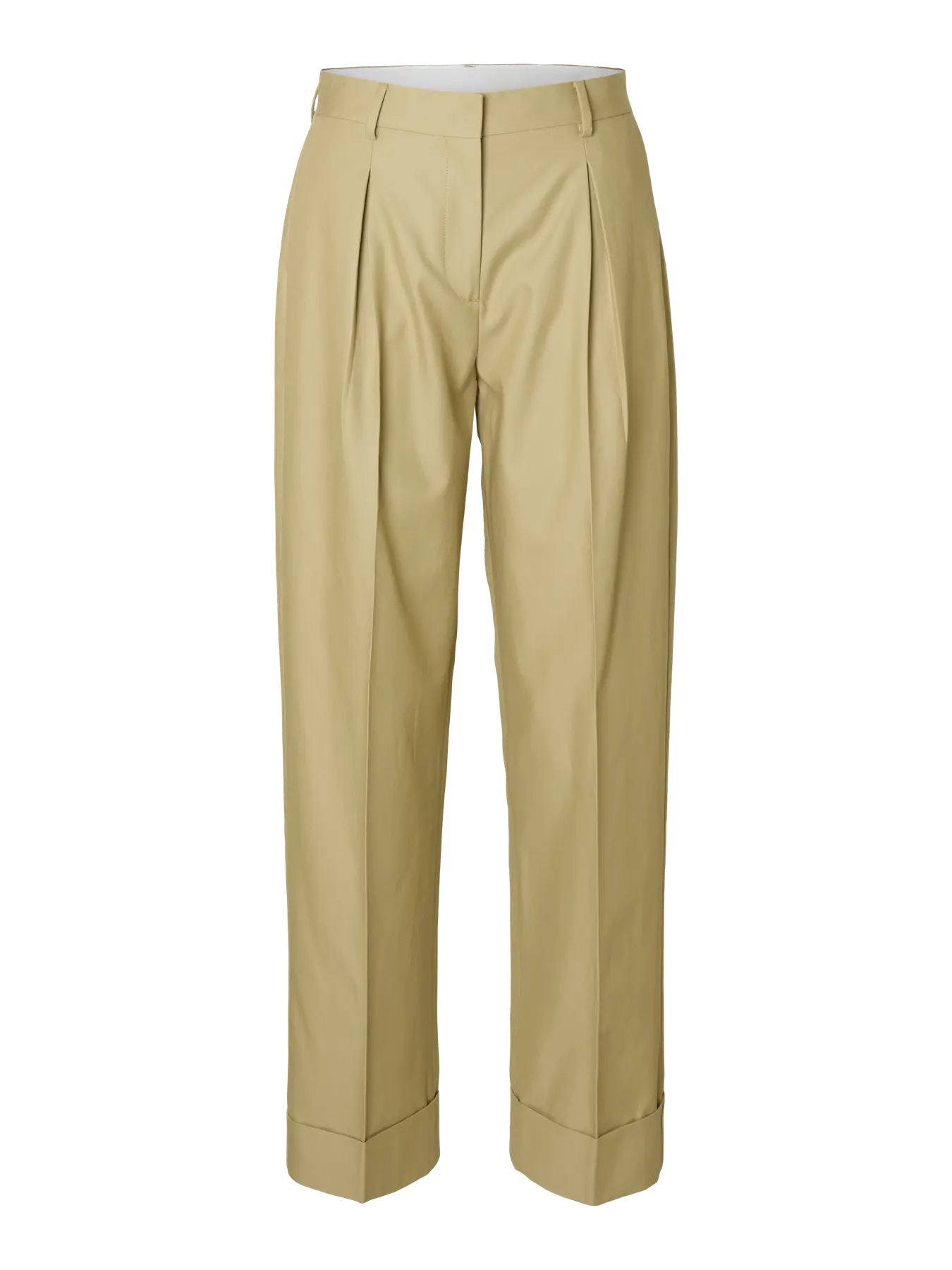 • Heerlijke pantalon in de kleur slate green. Grote omslag aan onderkant van de pijp en steekzakken.