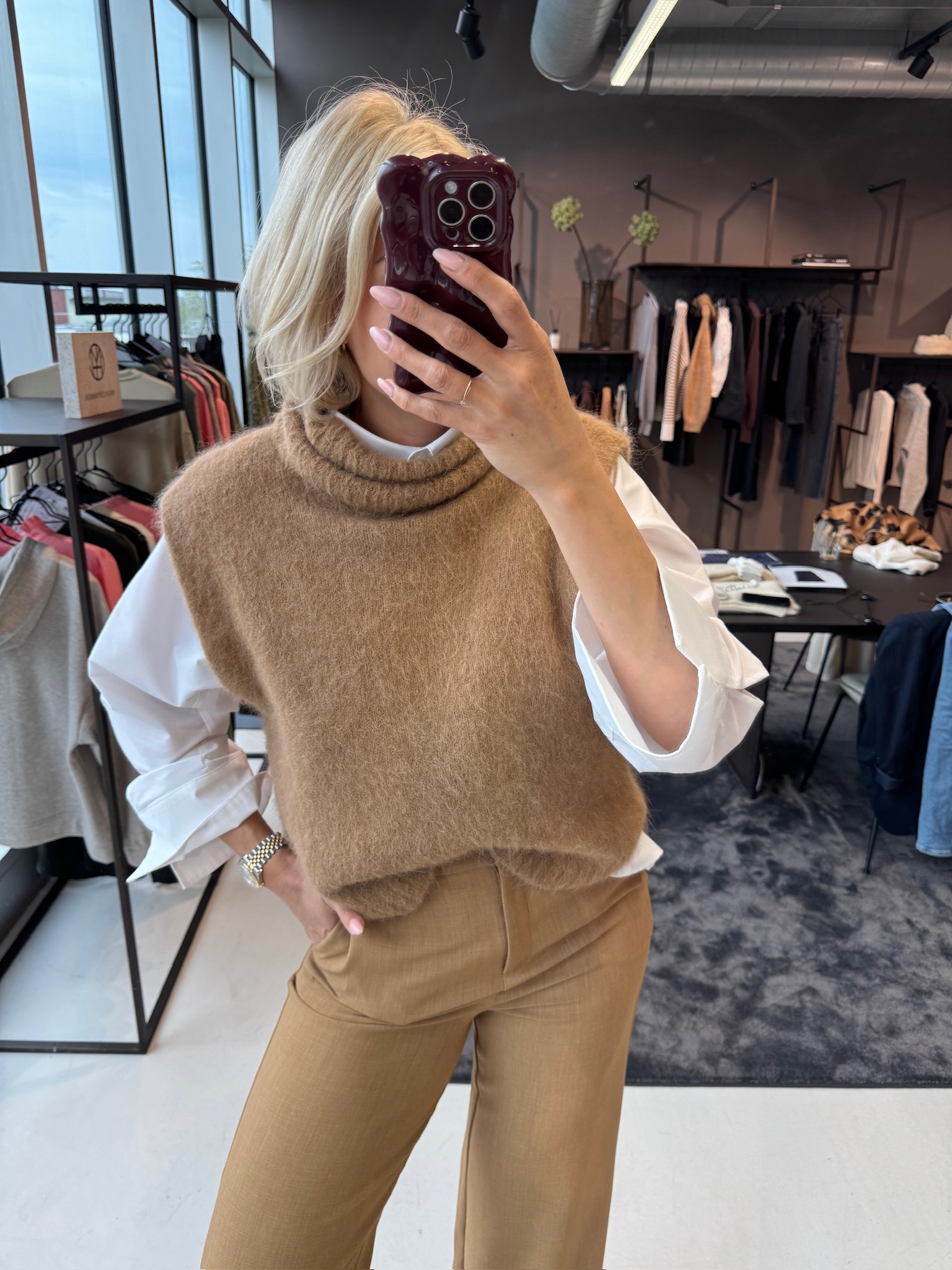 High waist pantalon met een elastische taille met een klein koordje als detail. Dit is het lange model, dus perfect voor de lange dames van 175cm of langer.