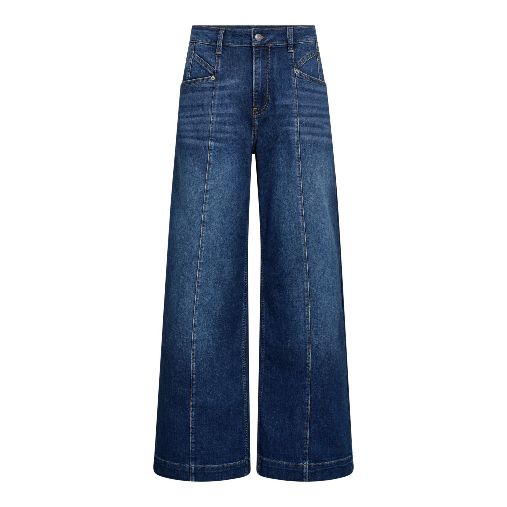 Deze jeans is een moderne klassieker in een frisse denim blauwe wassing. De jeans, heeft een rechte pasvorm met een comfortabele mid waist taille en licht wijd uitlopende pijpen.
