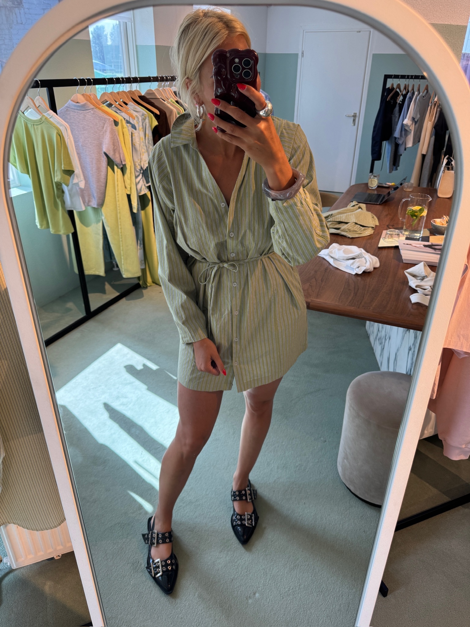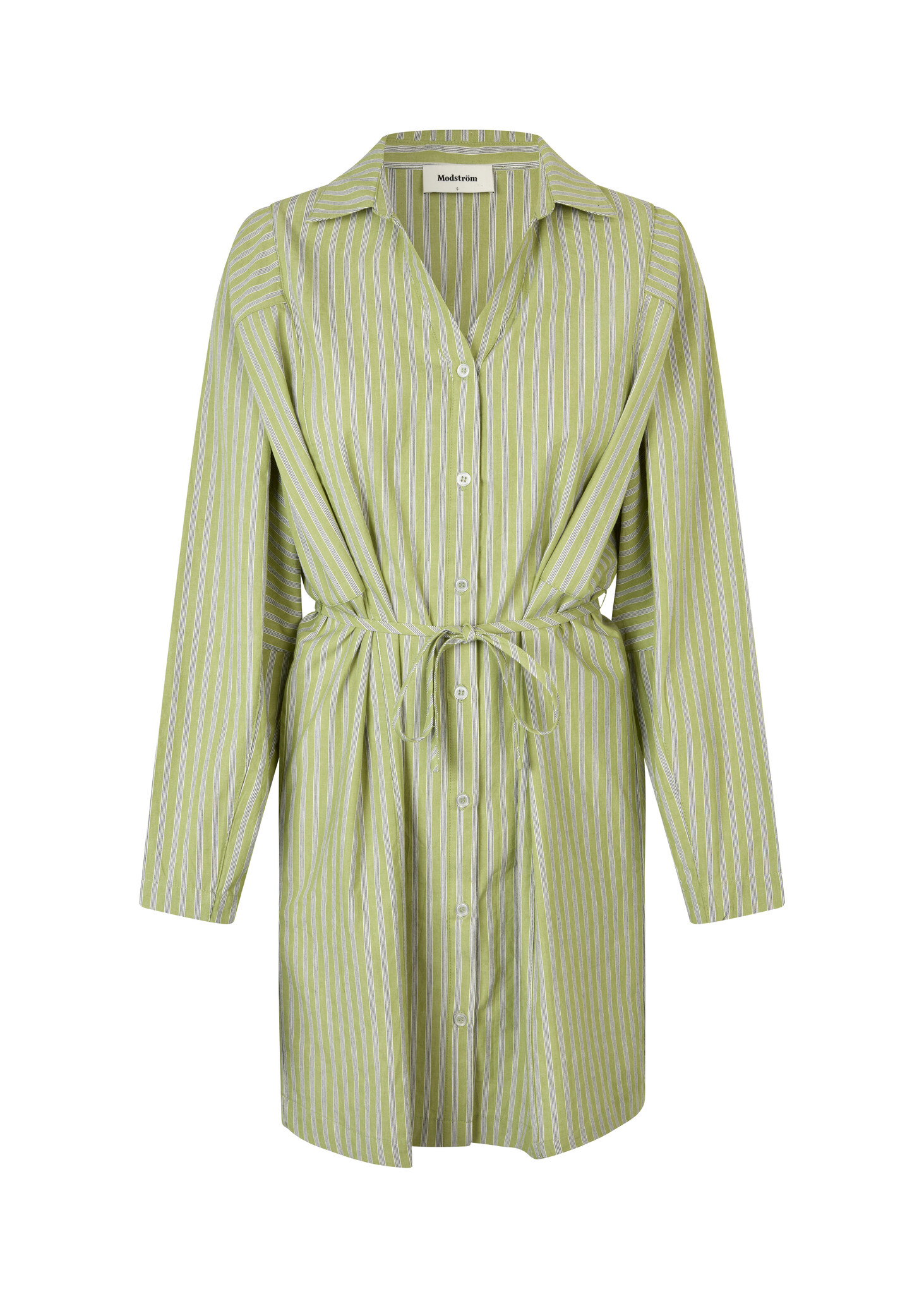 Een elegante jurk met een tijdloze, moderne uitstraling. Het subtiele streeppatroon en de frisse tarragonkleur zorgen voor een verfijnde look, terwijl de comfortabele pasvorm de jurk geschikt maakt voor elke dag. Makkelijk te stylen, van casual tot meer gekleed.